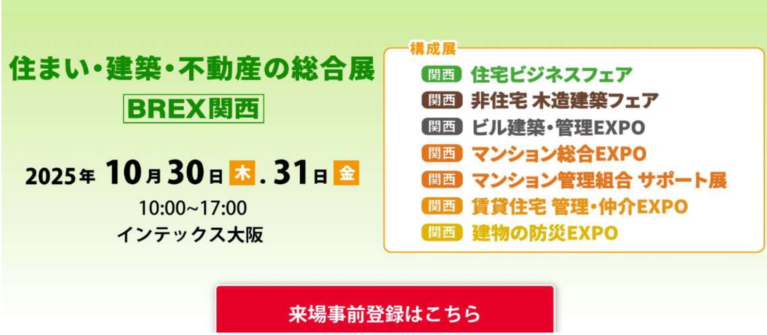 10/30(木)、31(金)の2日間、大阪南港「インテックス大阪」で開催される【 住まい・建築・不動産の総合展 [BREX] 】に出展いたします!