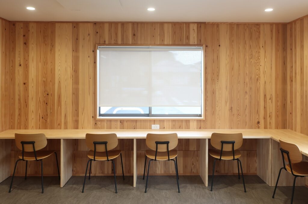 - Jパネル(36mm厚CLT)を打合せスペースとテーブルに使用した事例(学社融合塾はなさく境港)