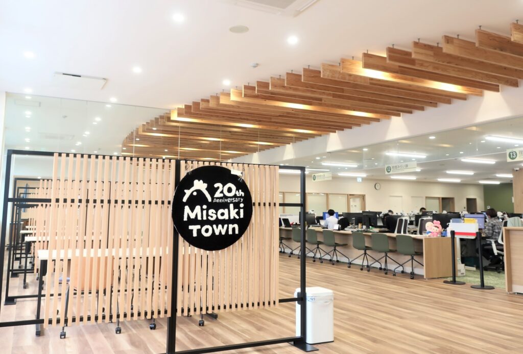 岡山県中央部に位置し、豊かな自然を有するまち、岡山県・美咲町。町の新拠点、美咲町多世代交流拠点(通称「みさキラリ」)に、2025年5月、3つ目の拠点、美咲町新庁舎が完成しました。物産センター(産業交流棟)と生涯学習センター(生涯学習棟)に並ぶ庁舎(行政棟)です。コンセプトは「シンプル・コンパクト・フレキシブル」。極力無駄を省いた建物ですが、その中で印象的なのが、天井に設けられた曲線的デザインのルーバー。美咲町産材で作られたJパネル(36㎜厚CLT)をお使いいただいています。隣接するバスの待合室の内装にも、Jパネルがふんだんに使われており、木がもたらす視覚的魅力で優しさと柔らかさを感じられる空間にお役立ていだいています。