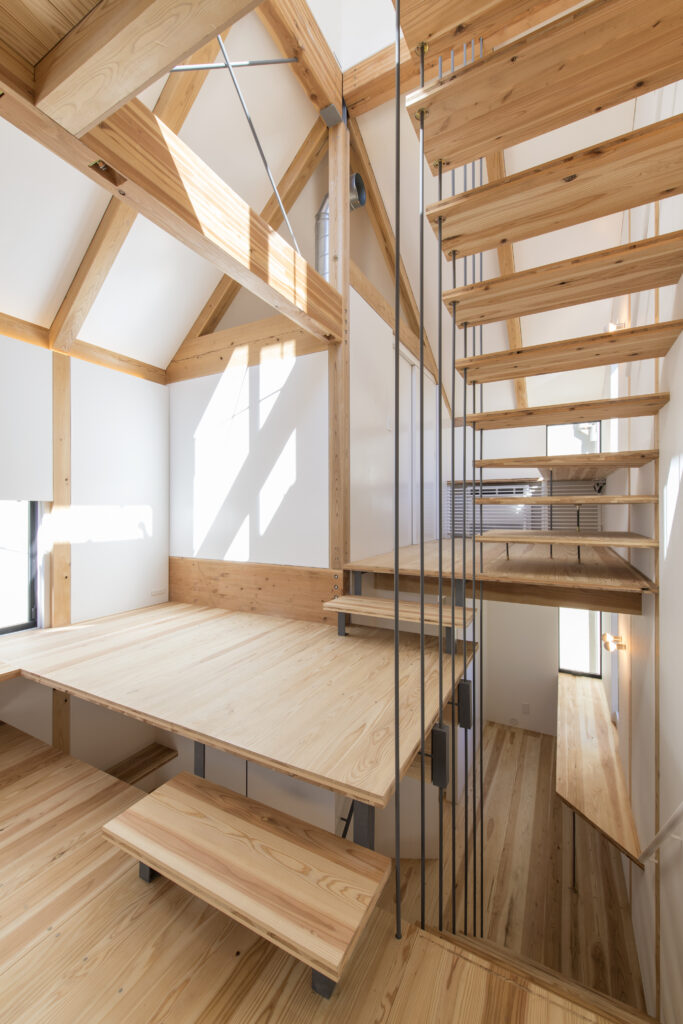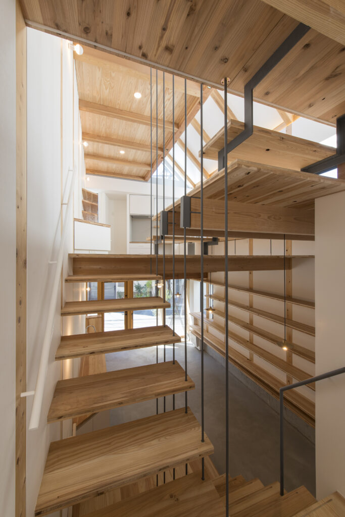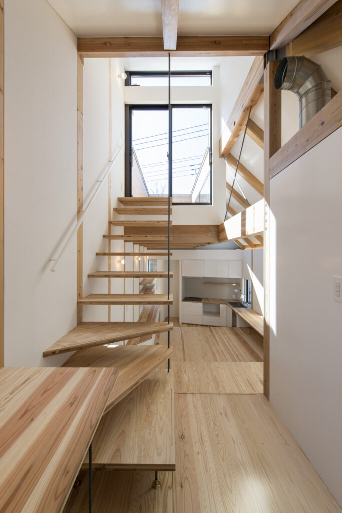 Jパネル(36mm厚CLT)利用のスキップフロアで開放的な住宅の事例【井の頭の家】